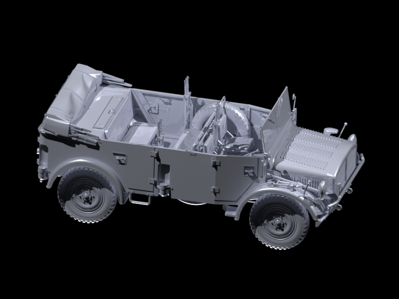 Детализированный сборный кузов, проработанный интерьер с сиденьями, панелью приборов, элементами управления, двери выполнены отдельными деталями.