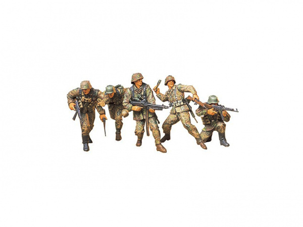 Сборная модель из пластика. Немецкий танковый десант (4 фигуры) в действии с MG42, MP44, G43 и Panzerfaust 60.