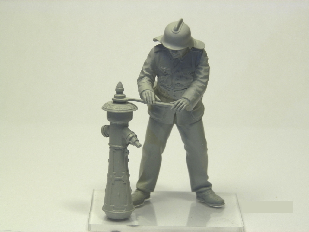 Детально проработанные головные уборы, огнетушители, пожарный гидрант, пожарный рукав и другие подробности.