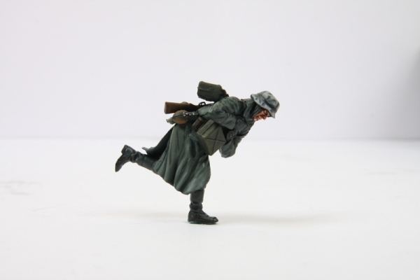 Набор из 4 фигурок пехотинцев вермахта, экипированных на зимний период 1941-1942 годов, вооружённых пистолетом-пулемётом MP-38 и карабином 98k. Один из пехотинцев переносит боекомплект для 50-мм миномёта.