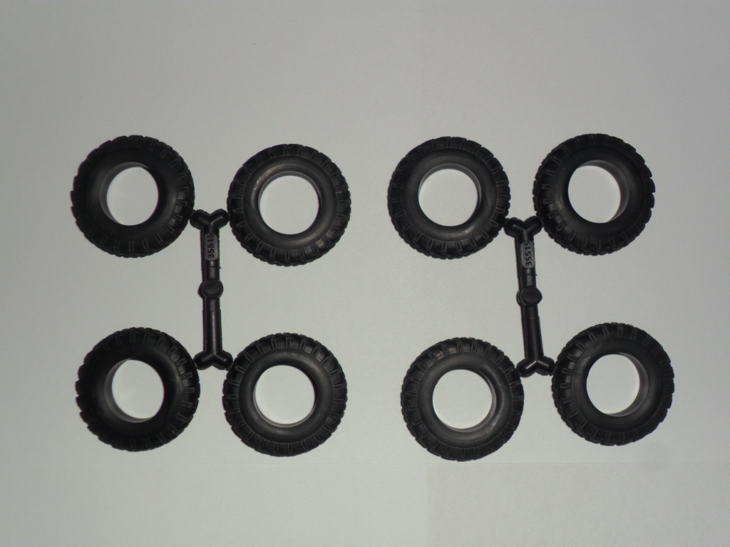 Покрышки из резиноподобного пластика с проработанным рисунком протектора.