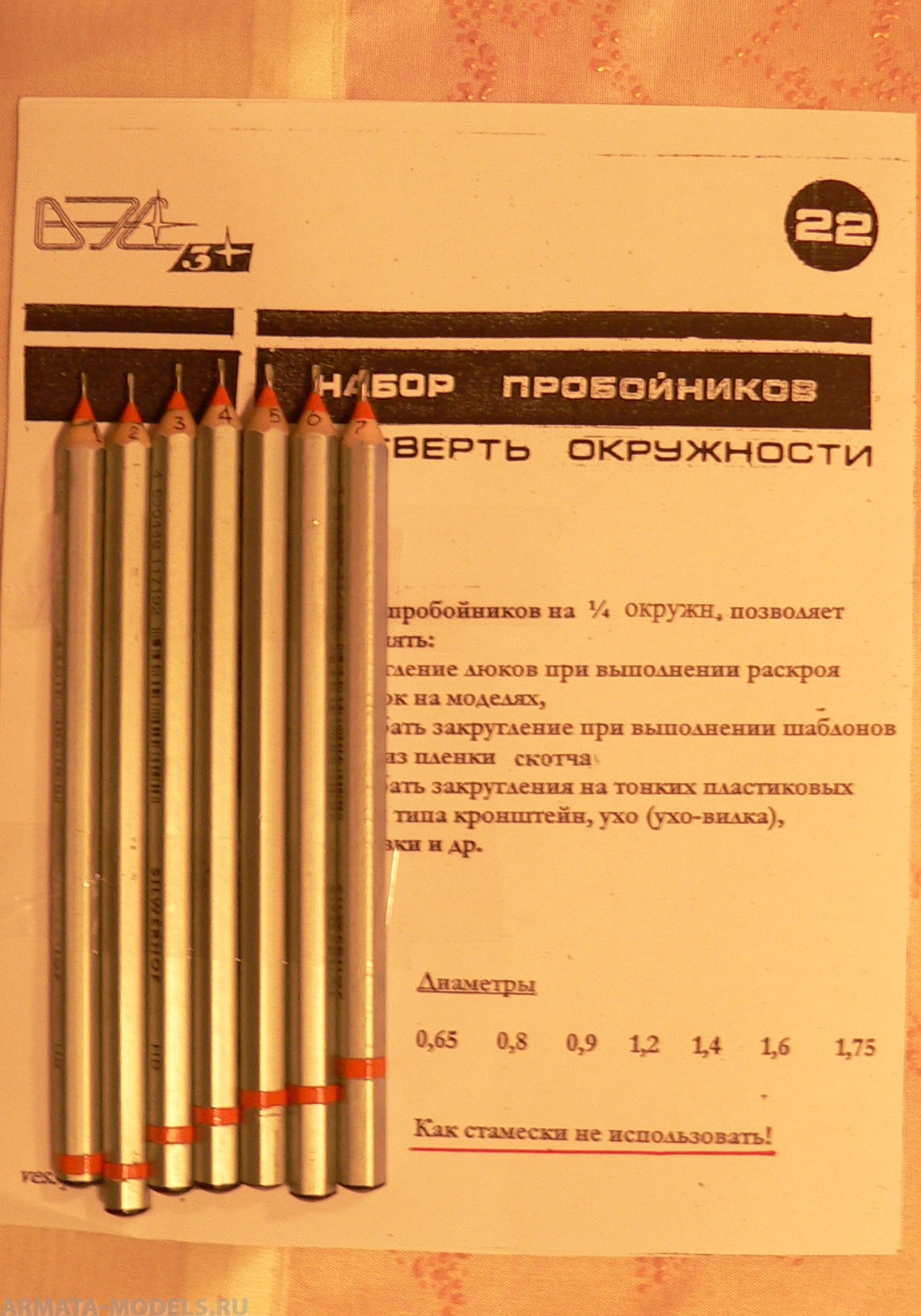 VES-22 Инструмент моделиста №22 Набор пробойников в четверть окружности ВЭС-Модель в Краснодаре, купить в интернет-магазине, цены, фото