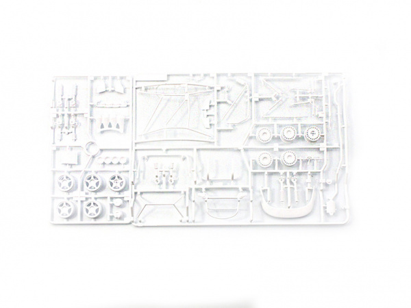 Кузов выполнен единой деталью из белого пластика. Днище и элементы салона из тёмно серого пластика.