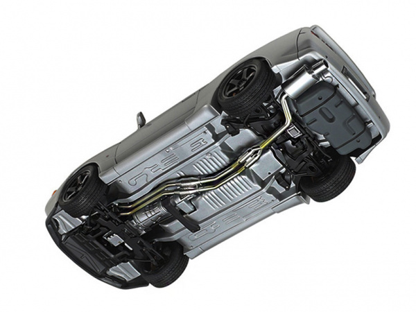 Детализированная подвеска, проработанные стойки, рычаги, амортизаторы, вентилируемые тормозные диски, выхлопная система выполнена отдельной деталью, поворачивающиеся передние колеса, проработанная поверхность днища.