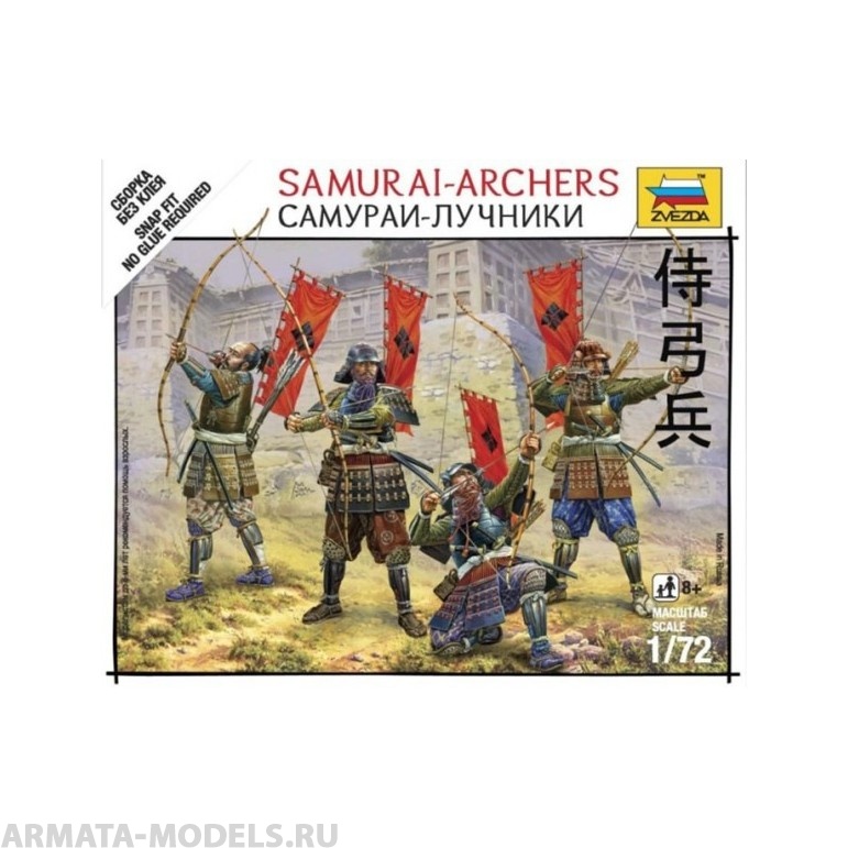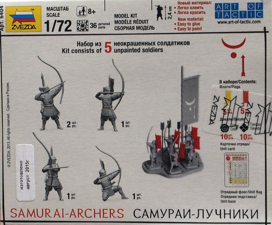 Очередное подкрепление для армии самураев. Самураи-лучники. В наборе 5 фигур. Позы выглядят очень реалистично, а проработка мелких деталей просто на высоте. Фигуры изготовлены с использованием технологии 3D-проектирования. В коробке, помимо фигурок, вы найдете подставки, флаги и два комплекта декалей для кланов Ода и Такеда.