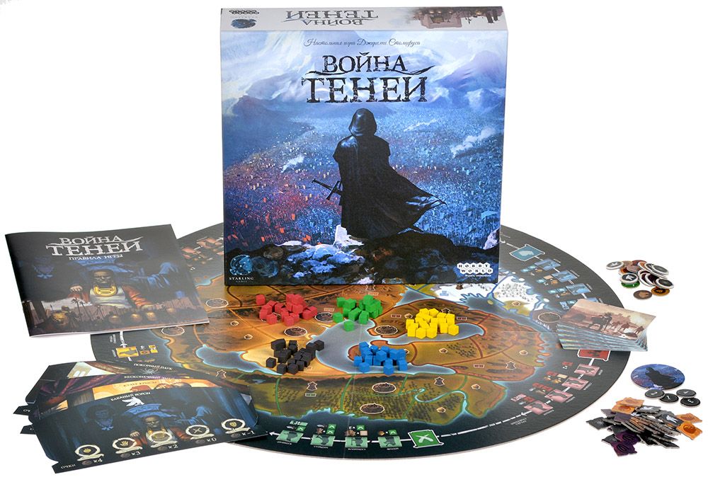 В настольной игре "Война теней" вы в роли серых кардиналов будете из-за кулис пытаться менять ход истории: внедряться в ряды советников империй, использовать рычаги влияния, командовать армиями и перекраивать мир по своему желанию.