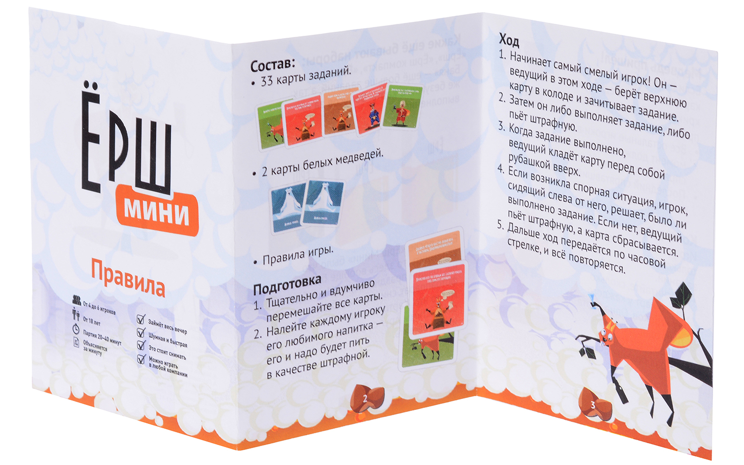 Нужно выполнять безумные задания и употреблять внутрь. Тот, кто набирает больше всего очков трезвости к концу игры, побеждает.