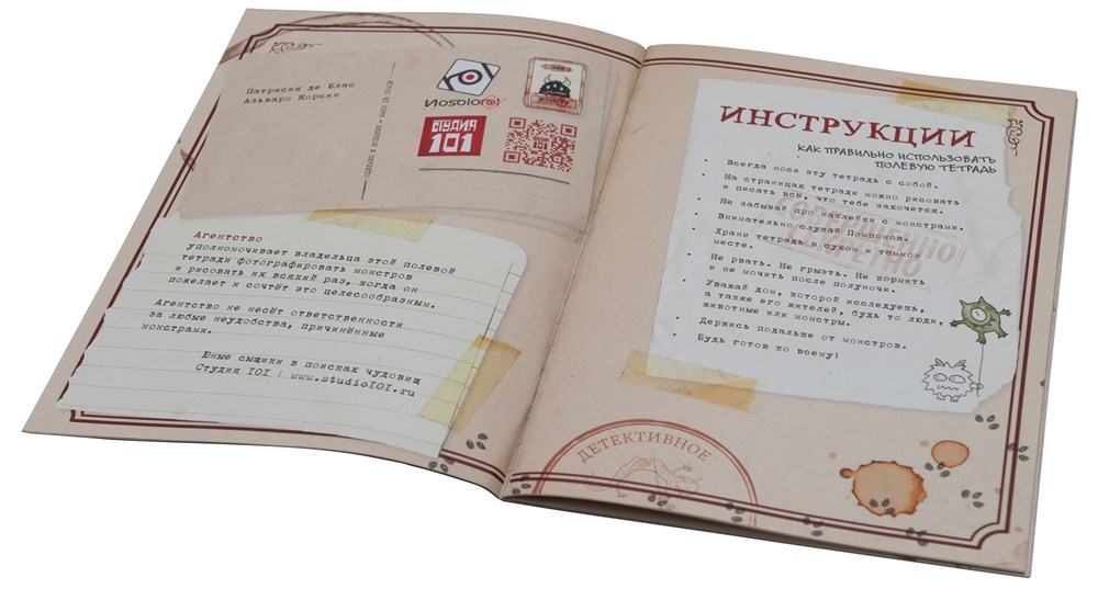 Перед вами – специальная полевая тетрадь юного сыщика. Если вы всегда мечтали работать в Агентстве и наконец-то туда попали, эта вещь вам очень пригодится! Сюда можно записывать свои достижения: каких монстров обнаружил владелец тетради, какие дела распутал и сколько сделал других важных и полезных вещей. Кстати, в тетрадь вложено несколько листов с наклейками монстров и медалей. Используйте их с умом, чтобы все знали, какие вы эффективные детективы!