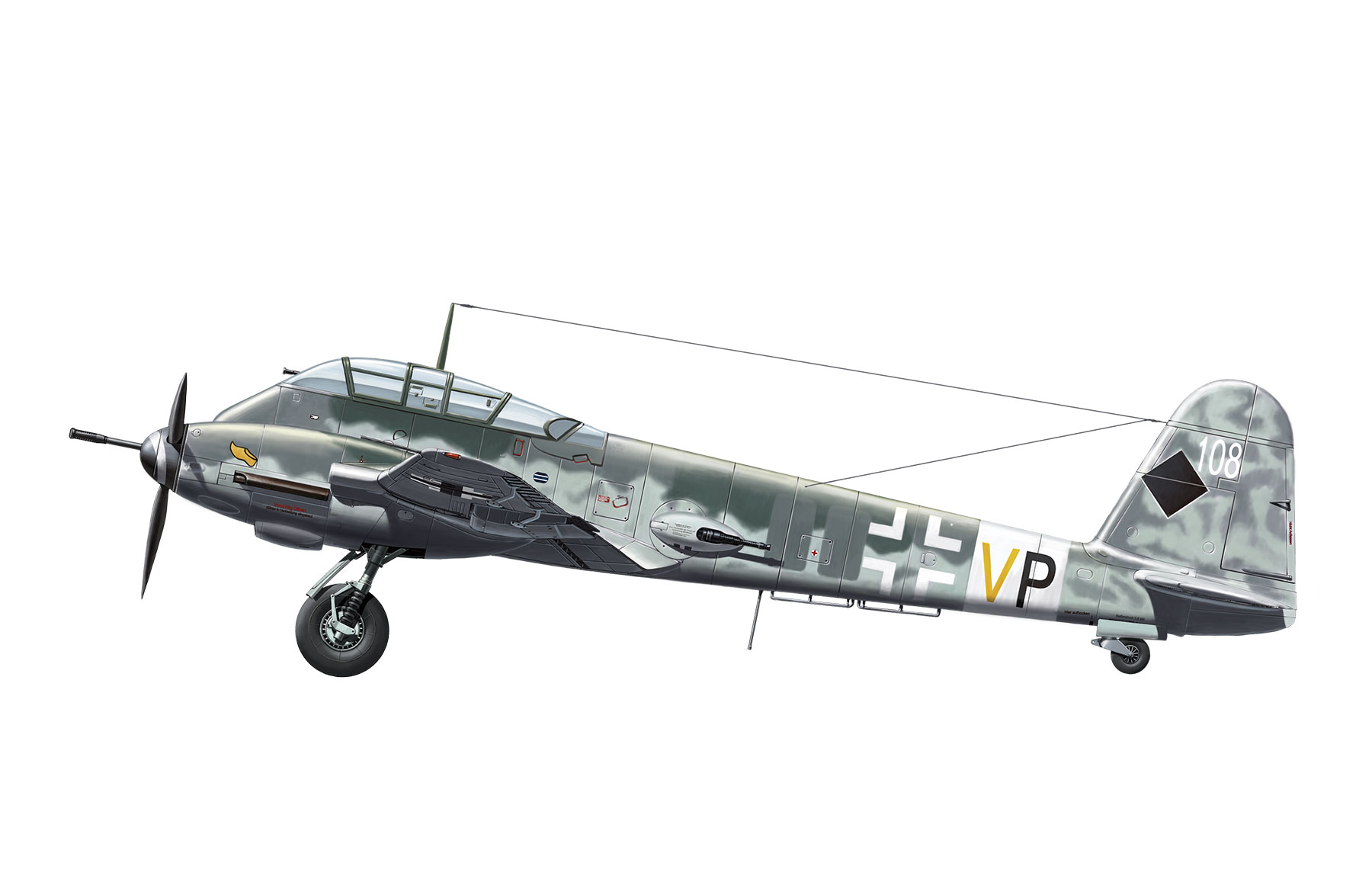 Messerschmitt Me 410 прозванный "Hornisse" (Шершень) был немецким тяжелым истребителем и скоростным бомбардировщиком Второй мировой войны. Разрабатывался на основе Me 210 и оснащался более мощным двигателем Daimler-Benz DB 603A, существенно улучшавшим его характеристики. На самолеты модификации Me410B-2/U4 устанавливалась 50мм пушка BK5, из-за который он был прозван "убийцей бомбардировщиков".