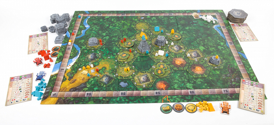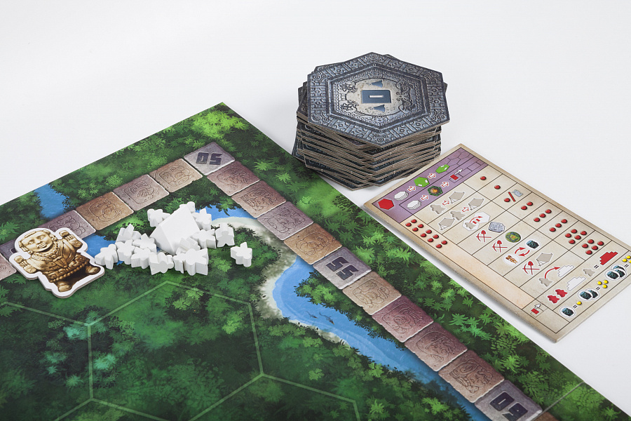 1000 лет назад здесь не было джунглей, а кипела жизнь ушедшей цивилизации. Вам предстоит участие в археологической экспедиции на севере Гватемалы. Игроки будут поочерёдно выкладывать на поле жетоны разведанных территорий и проводить исследования . У каждого игрока будет по 10 очков действий в ход и расходовать их можно по своему усмотрению – на перемещение, поиск кладов, расчистку пирамид и т.д. Предусмотрен вариант с аукционом для опытных игроков.